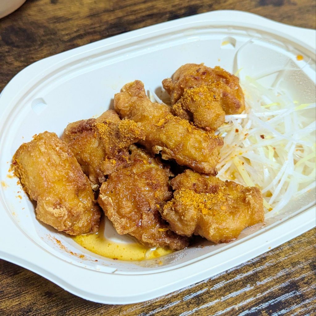 This is “Dragon Chicken.” It’s karaage topped with chili peppers, and it had a spicy flavor that seemed perfect with alcohol.